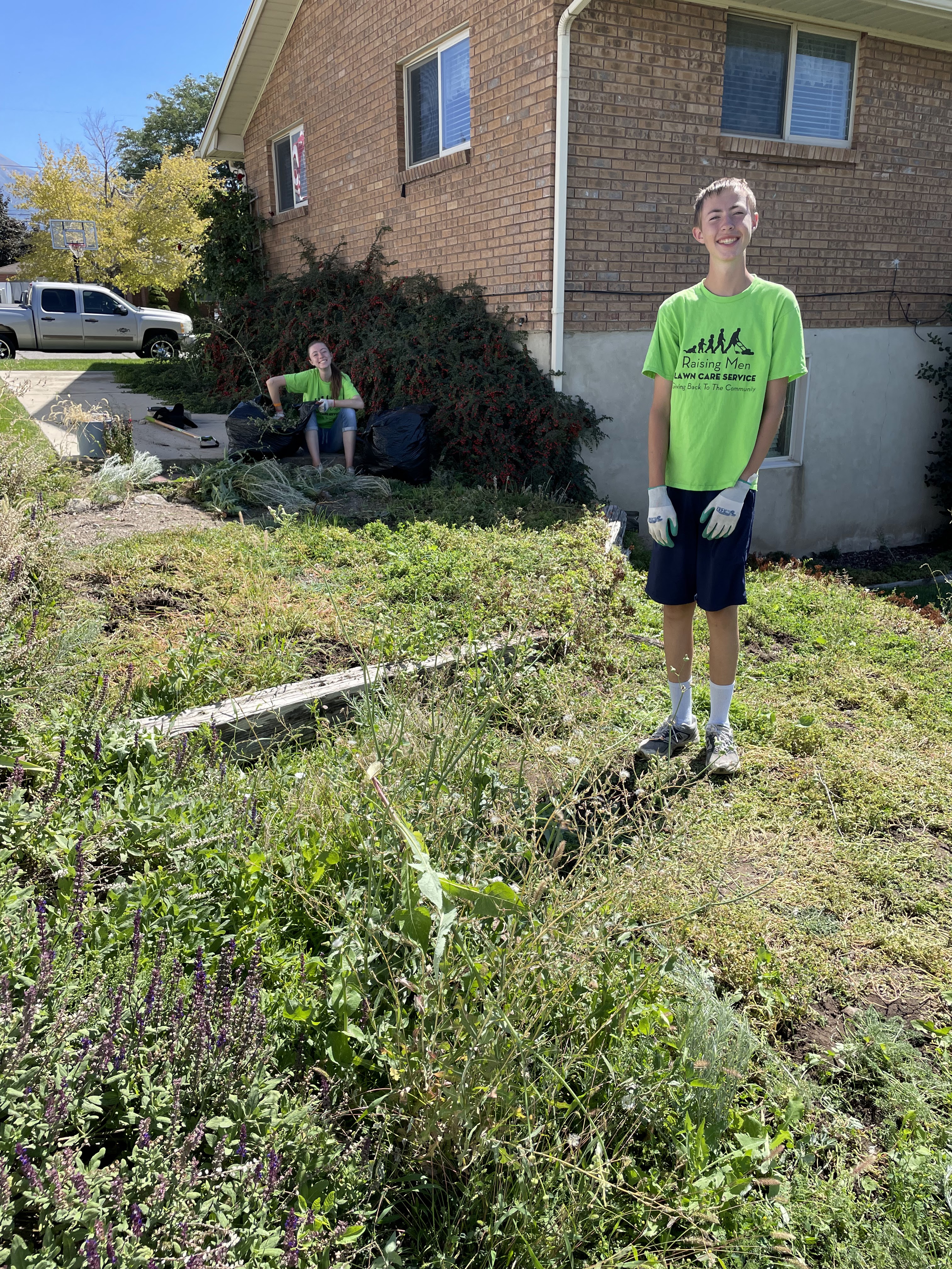 Mike is a neighbor we hadn't met before. Actually we still haven't met him. Another neighbor suggested we might help with the lawn mowing. Mike was diagnosed with stage 4 cancer this past year. He is doing some pretty intense treatments in order to get better. This has left him unable to take care of his large lawn. So Annalisa and Matthew stepped up to the plate to mow his lawn.